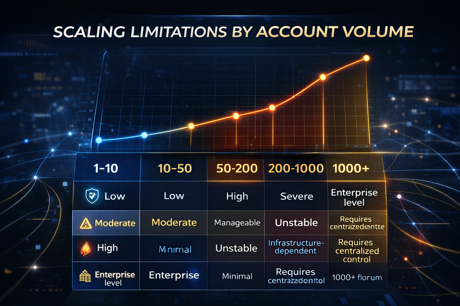 Based on infrastructure performance modeling, scaling limitations follow predictable patterns: